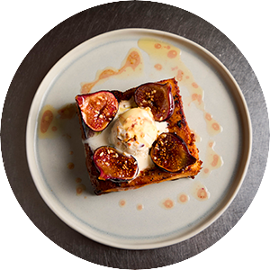 Pain brioché Hokkaido, figue de Solliès-Pont, glace à la vanille.